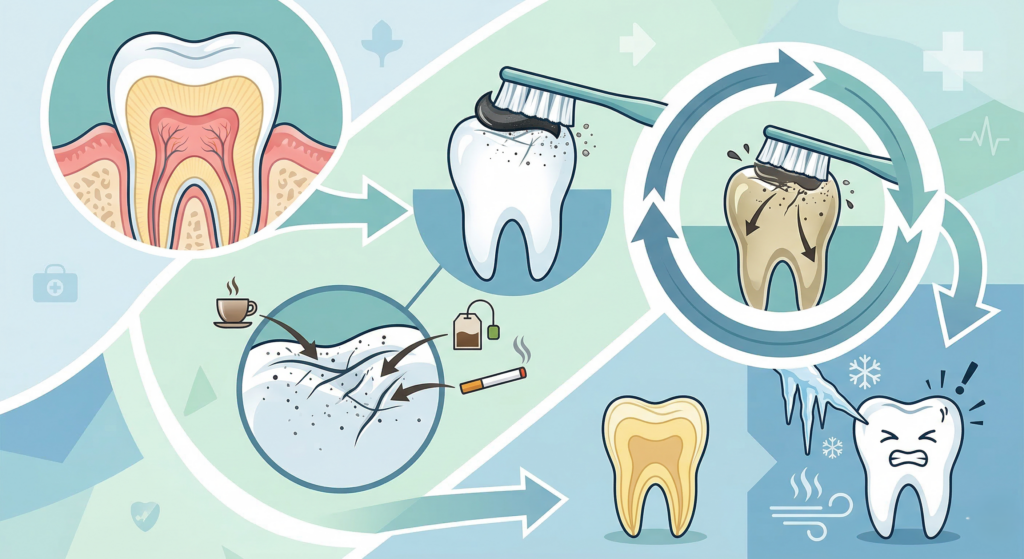 市販の強力な製品が行っているのは、大切な歯を犠牲にした物理的な「研磨」です。